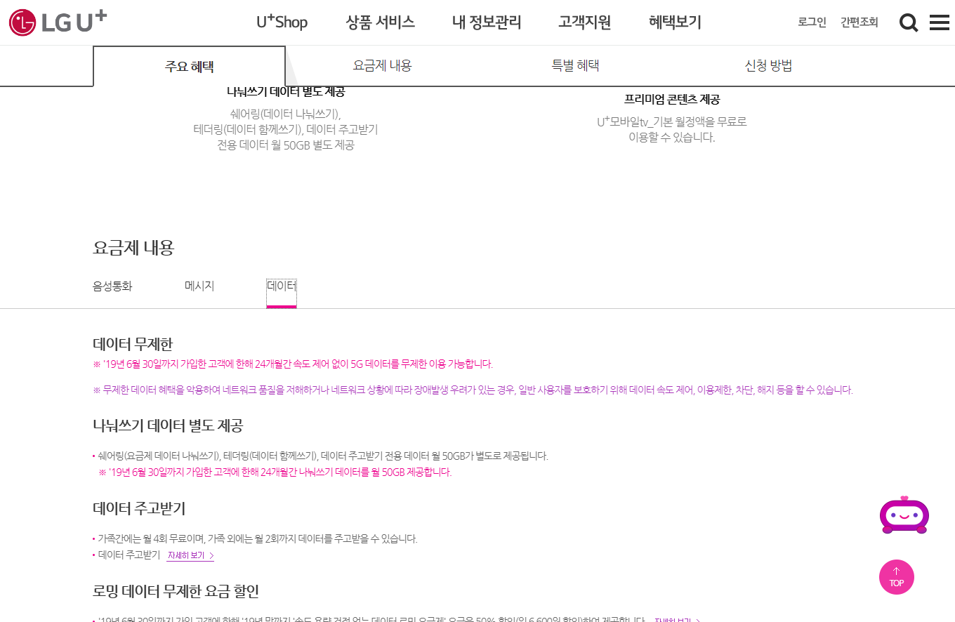 현재 LG 유플러스를 이용중으로 5G 상품에 관심이 있어 알아보던 중에 데이터 나눠쓰기에 문제점이 있음을 발견했다.