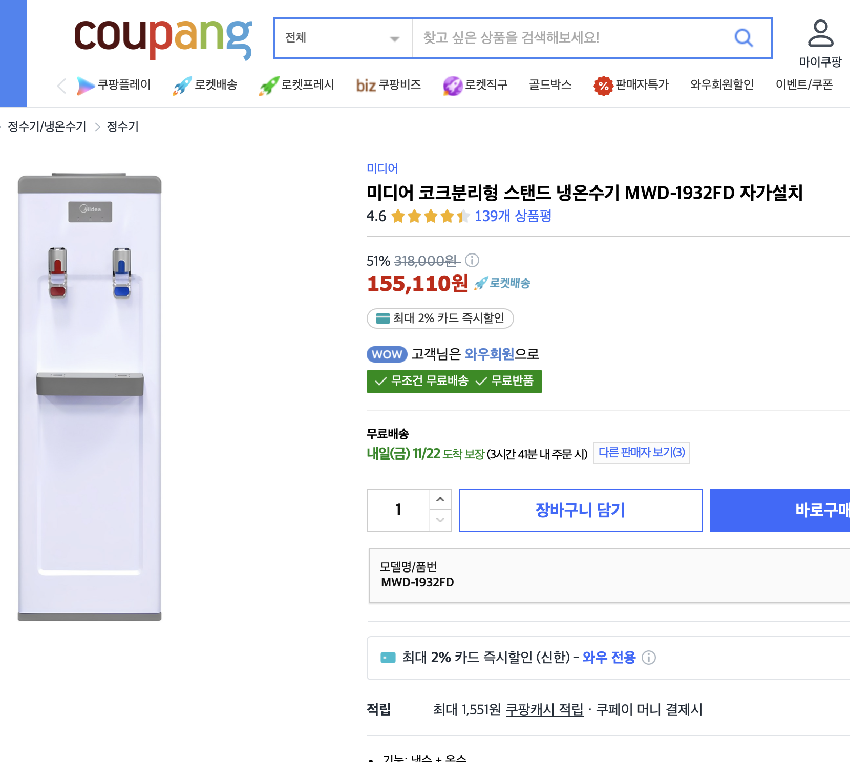 미디어 코크분리형 스탠드 냉온수기 MWD-1392FD - 온수 버튼 사용법 (내돈내산)김정훈/일상 2024. 11. 21. 20:28반응형
